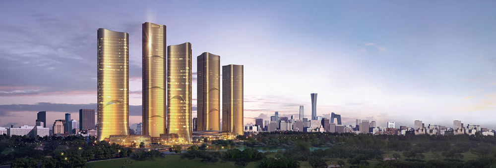 大望京2号地,近60万平米总体规划,由五栋160-220米的超高层建筑及环形商业体组成,建筑通体采用流线型玫瑰金幕玻璃墙外观设计,世界知名建筑大师安得宝先生(Andrew Bromberg)团队打造,致力“绿色、生态、科技”的规划理念,荣获2013亚太五星最佳高层建筑大奖。