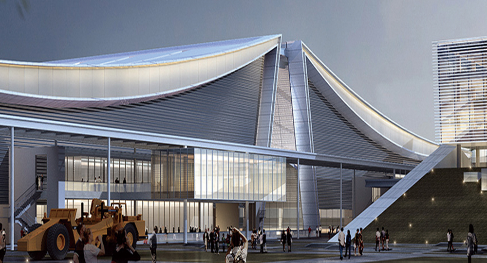 长沙国际会展中心主场馆总投资近60亿元,占地面积约800亩,根据“适度、预留”原则,分两期建设,北登录厅、内廊及北面四组八个展厅为一期建设,南登录厅及南面两组四个展厅为二期建设,远期规划约400亩为场馆建设预留。